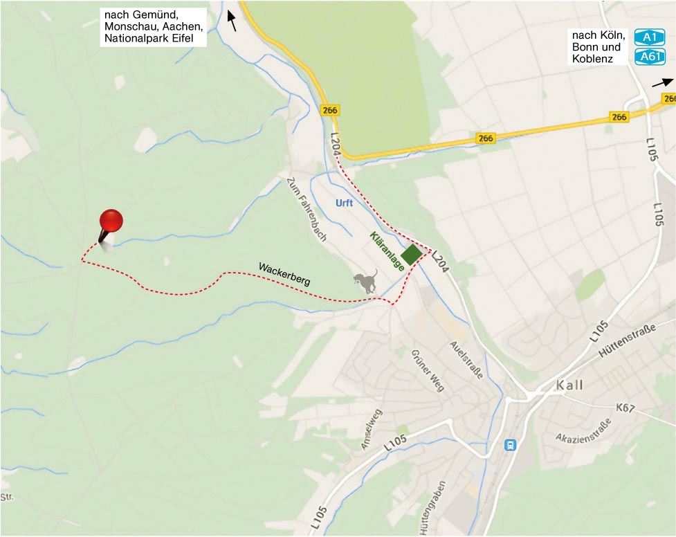 Wenige hundert Meter vom Haus Wackerberg entfernt führt der "Pingenwanderweg", ein landschaftlich reizvoller Bergbaulehrpfad, zu 21 Stationen der Erzgewinnung rund um Kall.