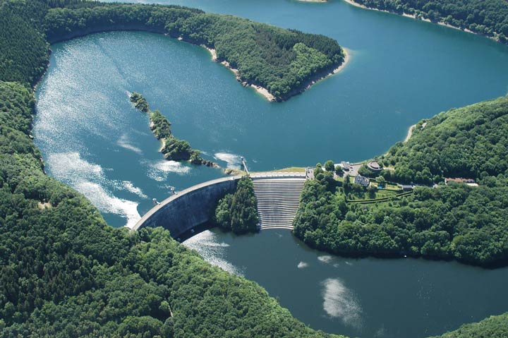 ist die älteste Talperre der Eifel und befindet sich mitten im Nationalpark Eifel. Die Staumauer wurde Ende des 19. Jahrhundert als größtes Bauwerk in Europa geplant; sie war bis die höchste Staumauer Europas. Mit dem Bau der 266 m langen Mauer aus Bruchsteinen wurde 1899 begonnen - im Mai 1905 war die Talsperre erstmals mit Wasser gefüllt. Ziel war neben dem Hochwasserschutz und der Energiegewinnung die Trinkwasserversorgug der Region.